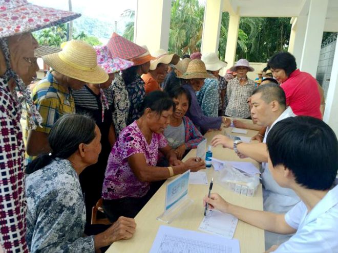 2016年7月30日上午,农工党三亚市委会组织农垦支部党员医护人员,到吉阳区罗蓬村开展“送健康进乡村”活动。三亚市人大常委会副主任、农工党三亚市委会主委邢孔祥,农工党三亚市委会副主委陈雪霞参加活动。