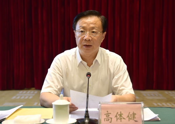 高体健在讲话中指出,要把学习“七一”重要讲话同学习习近平总书记系列重要讲话精神、中共中央治国理政新理念新思想新战略结合起来,深刻理解精髓要义,尤其要深刻理解不忘初心、继续前进的重大意义,进一步增强政治意识、大局意识、核心意识、看齐意识,进一步坚定道路自信、理论自信、制度自信、文化自信,真正在武装头脑、凝心聚力、指导实践、推动工作上不断取得新成效。高体健强调,换届工作任务重、要求高、责任大,政治性、政策性、纪律性都很强。一要提高思想认识,把握总体要求;二要坚持正确导向,优化班子结构;三要严格执行政策,做好思想工作;四要深化政治交接,增进政治共识;五要加强监督检查,确保风清气正;六要加强组织领导,落实工作要求。各市级组织要把换届工作摆上重要议事日程,准确理解各项政策要求,全面把握换届工作部署,严格按照规定程序办事,确保换届的严肃性、选举的公正性和人选的群众基础。