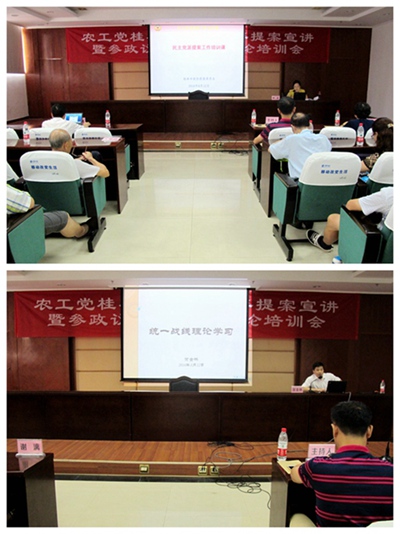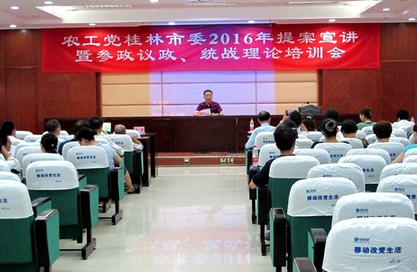 2016年8月12日上午,农工党桂林市委会举办2016年提案宣讲暨参政议政、统战理论培训会。市委会副主委周长山、邓翠荣出席会议。宣讲会由市委会副主委周长山主持。