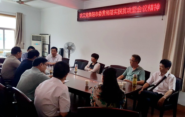 2016年8月22日,农工党阜阳市委会召开专题学习会,传达贯彻全市“千名政协委员助力脱贫攻坚”活动精神。阜阳市政府副市长、农工党阜阳市委会主委黄珍出席会议。