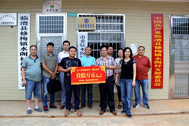2016年8月26日下午,带着常德市456名农工党员的情意与重托,农工党常德市委会主委杨健全带领市委会班子成员及市城区部分基层组织负责人来到对口帮扶点村——临澧县修梅镇水阁村,为该村送来十万元扶贫建设资金,以改善困难群众的生产生活条件,为他们脱贫致富奔小康助上一臂之力。