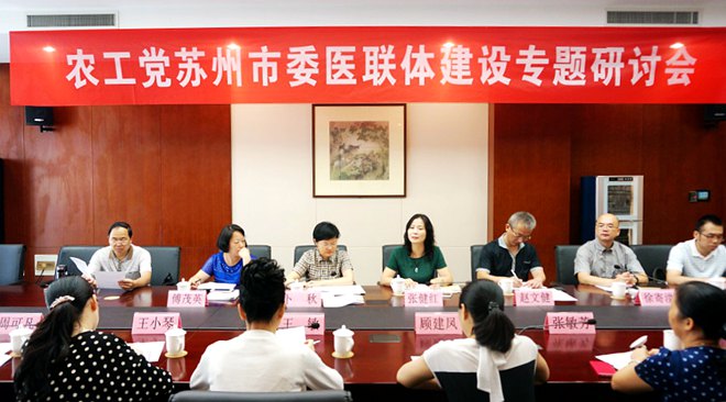 2016年8月30日,农工党苏州市委会举行区域性组织专题研讨会,来自农工党苏州市委会、常熟市委会、张家港市委会、姑苏区工委、昆山总支、园区总支、新区总支、太仓总支、吴中支部、相城支部和吴江支部的二十多名医疗卫生一线的党员,实地调研了姑苏区娄江社区卫生服务中心,并围绕医联体建设进行研讨。会议由农工党苏州市委会副主委兼秘书长张健红主持,农工党苏州市委会主委周俊、副主委卜秋出席会议。