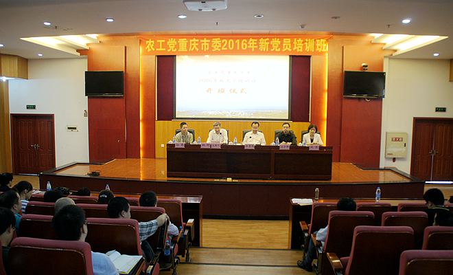 2016年9月25日至28日,农工党重庆市委在重庆市社会主义学院举办2016年新党员培训班。重庆市人大常委会副主任、农工党重庆市委会主委杜黎明,市委会副主委但彦铮、姚树、王本朝、戎蓉,秘书长孙西出席了开班式,并与新党员们合影。市委会机关处室负责人、来自20个区县的130余位新党员参加了培训活动。