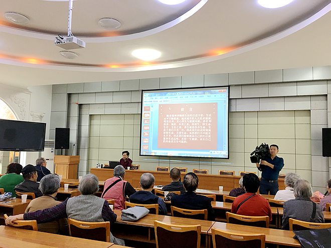 座谈会上,区委通过视频的方式向老党员们展示了农工中央优秀的演讲《用热血谱写爱的事业》和音乐朗诵《党史长歌》,激昂的表演配上振奋人心的音乐背景,很好的诠释了农工党的风采,赢得了台下经久不息的掌声。退休一支部主委杨顺江带来了《谈养生论健康》讲座,结合诸多科学养生方法,谈疾病的预防和治疗,让在座的党员们受益匪浅。