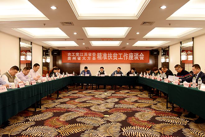 2016年10月31日,农工党江苏省委会“助推大方县经济发展”座谈会在南京召开。农工党江苏省委会副主委吴建坤主持会议。南京、苏州、常州、南通、连云港等市19名农工党员企业家、专家代表出席座谈会。中共大方县委常委、统战部长樊博,副县长刘小平,大方县经济开发区、卫计局、投资促进局、联络联系办、农工党大方县工委等单位负责人参加。