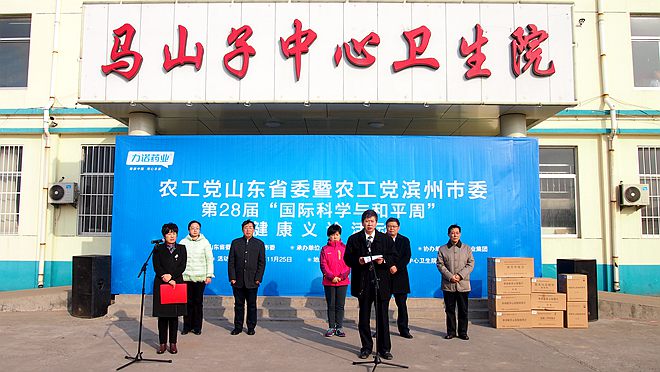 活动启动仪式上,滨州市北海经济开发区党工委委员、党群部部长杨新国首先发表了热情洋溢的欢迎辞。山东省政协常委、农工党山东省委会秘书长王军就开展健康义诊活动的意义、目的和要求作了重要讲话。力诺药业集团慷慨解囊,向马山子镇卫生院无偿捐赠八万余元的药品。