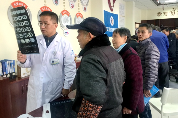 在义诊大厅,来自骨科、内分泌科、心血管科、儿科、耳鼻喉科等11个科室的医卫专家们正在忙碌着。大厅里人头攒动,有的是来咨询小孩经常性流鼻血的、有的是来问心脏跳得太快的,有的是拿了病历和出院小结来咨询的……血压血糖测量是最受老百姓欢迎的项目,经过现场测量,发现了几位高血压和糖尿病患者,张家港市中医医院心内科主任李献良和内分泌科副主任医师钱科威再三嘱咐病人一定要及时去医院确诊,制定治疗方案。