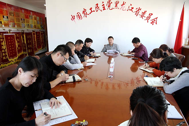 2016年12月5日上午,农工党黑龙江省委会机关召开学习会,认真传达学习农工党十五届五中全会精神。农工党中央委员、黑龙江省委驻会副主委刘长青主持会议并讲话。省委会秘书长孔令全出席会议,省委会机关全体干部参加会议。