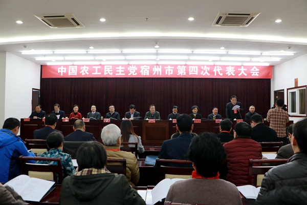 2016年12月17日至18日,中国农工民主党宿州市第四次代表大会在宿州召开。安徽省政协副主席、农工党安徽省委会主委牛立文,农工党安徽省委会专职副主委方才到会指导。中共宿州市委书记史翔、宿州市政协主席刘晓云、中共宿州市委副书记张孝成出席开幕式。中共宿州市委常委、组织部部长、统战部部长操隆山,宿州市人大常委会党组副书记、副主任张旭出席会议。