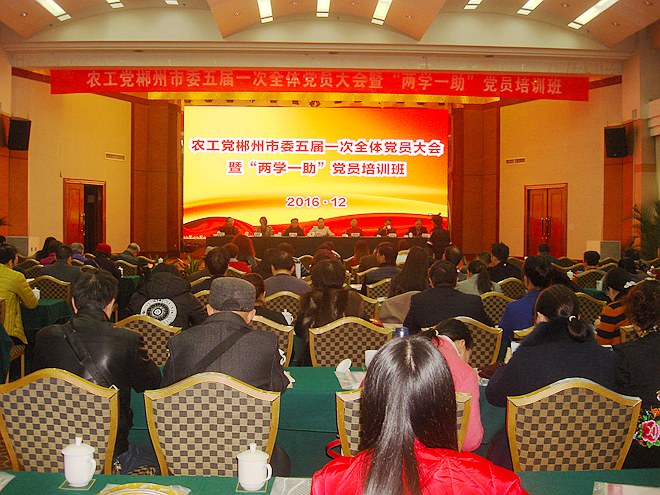 2016年12月23日,农工党郴州市委会在郴州国际大酒店国际会议中心召开五届一次全体党员大会暨“两学一助”学习教育培训班。