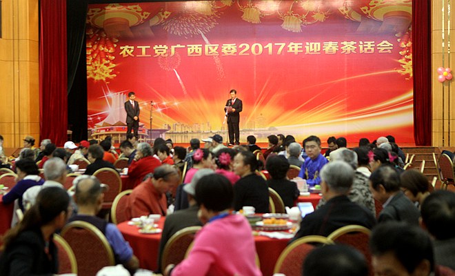 彭钊在茶话会上首先向大家致以新春的祝福,祝大家新年好。他说,刚刚过去的2016年,是极不平凡的一年,我国和我区实现“十三五”的良好开局。中共中央团结带领全国各族人民,把握国内国际两个大局,开启全面建成小康社会决胜阶段的伟大进程。自治区第十一次党代会胜利召开,确定了营造“三大生态”、实现“两个建成”,谱写建党百年广西发展新篇章的主题,令人鼓舞,催人奋进。