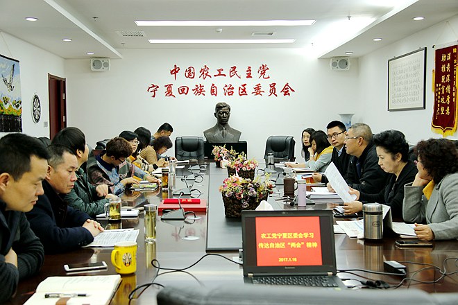 2017年1月16日上午,宁夏自治区“两会”刚刚胜利闭幕的第一个工作日,农工党宁夏区委会主委戴秀英就热情洋溢地把机关全体工作人员召集在一起,学习传达自治区“两会”精神。
