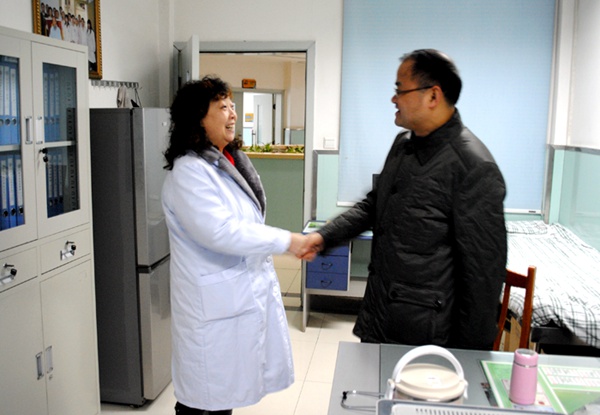 看到即将满80岁的扶兆民老主委精神矍铄,何山主委非常高兴。他仔细询问了扶兆民的身体状况,并代表市委会祝老领导身体健康、新年快乐。他希望扶兆民继续发挥余热,继续关心和支持新一届市委会班子的工作。看到原副主委周立红到了退休年龄,仍然坚持工作岗位治病救人,何山主委大为感动。他向周立红简要介绍市委会近期的工作,并祝福老领导新年快乐。