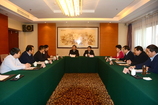 南阳市卫计委主任刘明杰,河南省政协委员、农工党南阳市委会副主委闫保卫,南阳仲景堂医院院长王若愚,南阳市张仲景基金会会长冀文鹏参加座谈会。 (农工党河南省委会办公室)