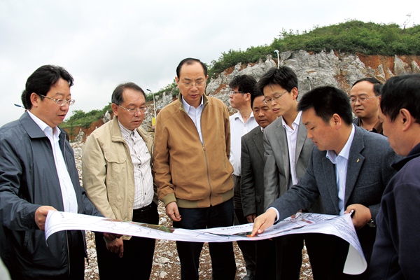 2013年5月4日,农工党中央副主席、农工党上海市委会主委蔡威(左三)、农工党中央副主席谢庆生(左二)率领企业家到园区考察