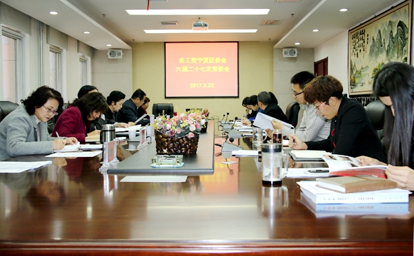 2017年3月22日,农工党宁夏区委会召开六届二十七次常委会议,全国政协委员、农工党宁夏区委会主委戴秀英主持会议并传达全国两会精神。