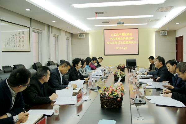 2017年3月20日,农工党宁夏区委会主委戴秀英按照自治区党委统战部的《关于支持各民主党派区委会开展脱贫攻坚民主监督工作的实施方案》的要求,就对口宁夏贫困山区海原县的民主监督工作,与海原县领导班子召开了座谈会。