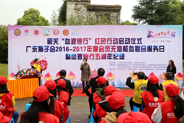 农工党韶关市委会主委卢春燕、广东狮子会韶州服务队创队队长邓宝见、韶关“血液银行”主席张书泽、韶关市残联理事长冯伟星,韶关市献血办主任、市中心血站站长张天弼等领导启动仪式。