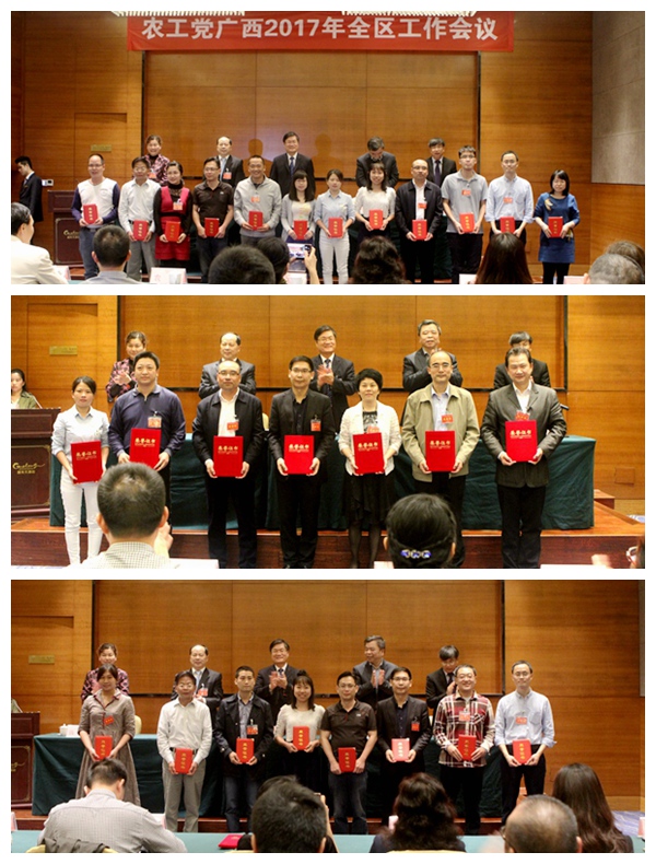 会议表彰了2016年度组织发展工作优秀单位,2016年度基层组织“为所在单位建良言”活动优秀单位和优秀成果,2016年度全区理论研究工作先进单位和优秀成果,2016年度党刊征订发行工作先进单位和先进个人,2016年度《广西农工》优秀通讯员和好文章奖。