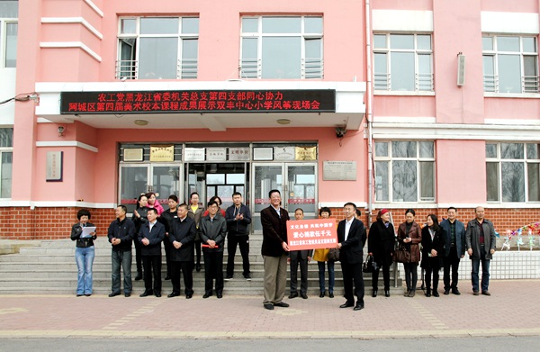 2017年4月20日9时整,农工党黑龙江省委会机关总支四支部开展同心协力哈尔滨市阿城区双丰中心小学校“爱心捐款”活动。农工党黑龙江省委会驻会副主委刘长青出席活动。