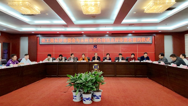农工党长沙市委会与永州市委会副主委、秘书长以及部分支部主委和机关专干等近40人参加本次签约仪式。(段翔)