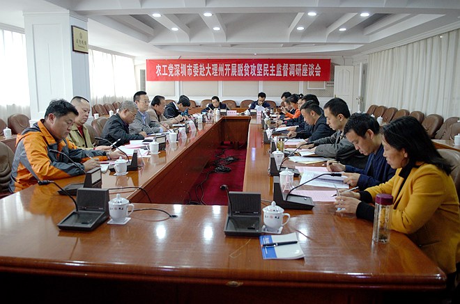 2017年4月24日至27日,由农工党深圳市委会主委、市卫计委副主任常巨平,市委会副主委、广东省仁人律师事务所合伙人樊成玮,市委会原主委刘家琛,以及庹兵、吴先宏、胡任重、袁涛等农工党党员企业家组成的农工党深圳市委会调研组赴大理州委开展脱贫攻坚民主监督调研。此次调研是为了举全党之力协助云南省打赢脱贫攻坚战,根据农工党中央安排,由农工党深圳市委会对口大理州开展脱贫攻坚民主监督工作。