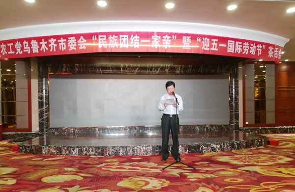 2017年4月27日,农工党乌鲁木齐市委会在海大酒店举办了“民族团结一家亲”暨“迎五一国际劳动节”茶话会。市委会主委江启新出席联谊会并致辞。