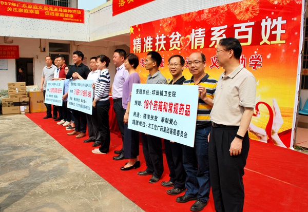 2017年5月7日,农工党广东省委会组织医疗、教育等专家赴韶关南雄市坪田镇开展的以传递温暖、送医送药、义诊助学为主题的“情系坪田,义诊助学”精准扶贫活动。省委会副主委张华、韶关市委会主委卢春燕参加了此次活动。