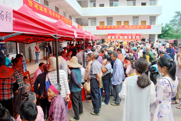 此次活动得到了坪田镇党委、政府的全力支持,不仅向各村广泛宣传,还特地在活动主会场坪田镇卫生院设置活动宣传背景版并悬挂宣传标语,镇、村干部和附近老龙、龙口等村的村民一大早就来到活动现场等候,场面十分热烈。