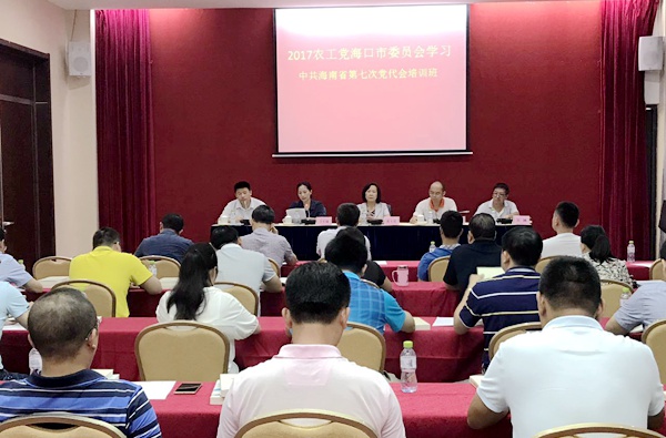 2017年5月6日,农工党海口市委会在中国(海南)改革发展研究院举办学习中共海南省第七次党代会培训班,农工党海口市委会主委张玉霞、专职副主委杜世龙、副主委吴涵参加开班仪式。农工党海南省委会副主委、秘书长吉小妹,海口市委统战部调研员洪飞莅临指导。培训班由杜世龙主持。