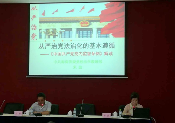 市委会邀请了中共海南省委党校法学教研部朱波教授作《从严治党法治化的基本遵循——〈中国共产党党内监督条例〉解读》专题讲座。