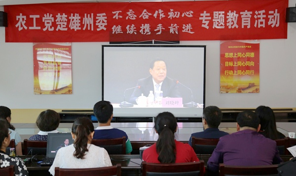 2017年5月13日,农工党楚雄州委会机关一、二支部和州疾控中心支部在农工党楚雄州党员学习教育基地联合开展“听党史讲座,观党史影片,看党史展览,学党史知识”活动,标志着农工党楚雄州委会“不忘合作初心,继续携手前进”的专题教育活动正式启动。楚雄州人大常委会副主任、农工党楚雄州委会主委夭建国出席活动。