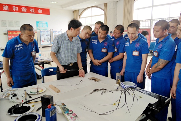 蚌埠强制隔离戒毒所目前主要承担皖北五个地级市强制戒毒人员的收治和中转,在所戒毒人员500余人。该所积极探索艺术戒毒新模式,成立了由戒毒人员书画爱好者组成的“禹墨书画社”。此次,省委会一行参观了戒毒所监管区,详细了解了戒毒人员的教育、康复、生活情况,观看了由戒毒人员表演的文艺活动,并为他们带来了200余册通俗易懂的普法书籍。同时与戒毒人员零距离座谈交流,引导和鼓励他们改过自新。书画院的书画家们还现场挥毫丹青,创作了多幅作品,并指导禹墨书画社的成员学习,接受书画艺术熏陶。