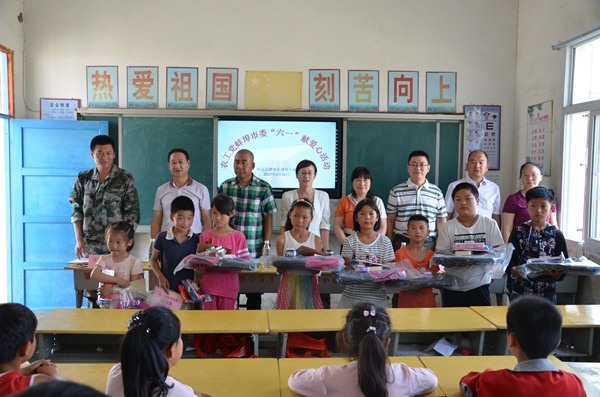 2017年5月31日上午,农工党蚌埠市委会来到怀远县淝南乡蒲林村蒲林小学开展“六一”献爱心活动,为该校的9名贫困儿童送去慰问金以及书包、字典等学习用品。农工党蚌埠市委会主委冯燕娴,副主委杨杞、徐豪参加活动。