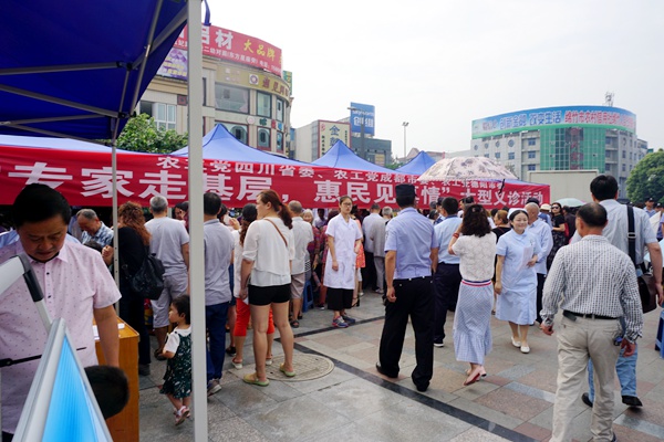 启动仪式结束后,来自四川大学华西医院、华西附二院、成都中医药大学附属医院、省人民医院的10多名专家在中心广场开展了“专家走基层,惠民见真情”大型义诊活动。当地群众一大早就排起长队,等待着在家门口接受省内知名专家的现场诊疗。专家们对前来诊疗的群众耐心询问、细心诊断;绵竹市医院的医生、护士们积极配合专家开展血压和血糖测定。活动为近2000名群众进行了义诊义检,开出药方800多份,发放宣传手册2000多份。为当地群众解决了实际困难,得到了群众的高度赞誉。