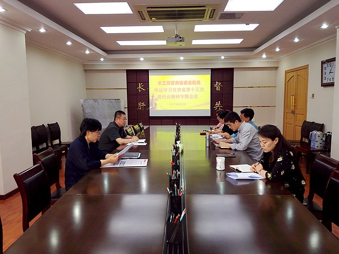 2017年6月2日,农工党甘肃省委会机关召开会议传达学习甘肃省第十三次党代会精神。农工党甘肃省委会副主委李晓霞主持会议,副巡视员、秘书长马岱钧出席会议。全体机关干部参加会议。