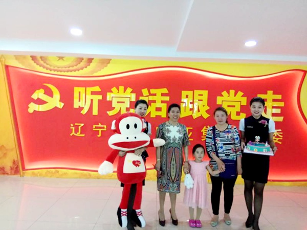 2017年5月31日,农工党辽宁省委会专职副主委兼秘书长朱航,省委会常委、丹东市委会副主委、丹东中金投资实业有限公司董事长曲静及爱心员工在沈阳中国黄金中街店一楼的麦田蛋糕坊,共同陪伴农工党辽宁省委会已故机关干部5岁幼女度过了一个隆重并有意义的“六一”儿童节,勉励孩子好好学习,助力孩子健康成长,并分别为孩子送去了节日慰问金。