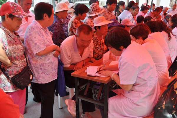 青龙湖镇社区卫生服务中心为本次活动给予了大力支持,为党员们提供了必要的设备,同时于场地有限,义诊在户外临时搭建的一排遮阳棚下进行。许多前来咨询的群众一大早就到活动现场等候,尽管天气炎热,党员们抵达后立即就位,直到最后一位患者离开。期间一些医生为避免因遮阳棚下光线不足影响判断,多次在烈日下进行检查,使来访患者颇为感动。
