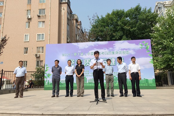 2017年6月13日,农工党山东省委会主办,农工党青岛市委会、青岛市环保局、青岛市北区镇江路街道办事处承办的2017(第十届)中国环境与健康宣传周活动,在青岛市市北区镇江路街道办事处海泊河社区广场举行。农工党山东省委会副主委王军,中共青岛市委统战部巡视员王进东,农工党青岛市委会副主委薄涛,环保局副局长汉红燕出席活动开幕式。王军和薄涛分别讲话。
