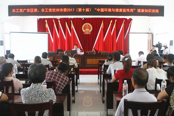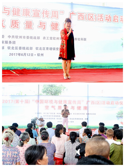 2017年6月12日上午,由农工党广西区委会、中共钦州市委统战部、农工党钦州市委会、钦州市社科联以及钦州市党外专家服务团联合主办的2017第十届“中国环境与健康宣传周”广西(区)活动启动仪式在钦州市青塘镇举行。农工党广西区委会副主委何玉庭,中共钦州市委常委、统战部部长蔡家东,农工党钦州市委会主委梁菊,农工党广西区委会秘书长兼组织部长庞文斌出席启动仪式。梁菊主持启动仪式。