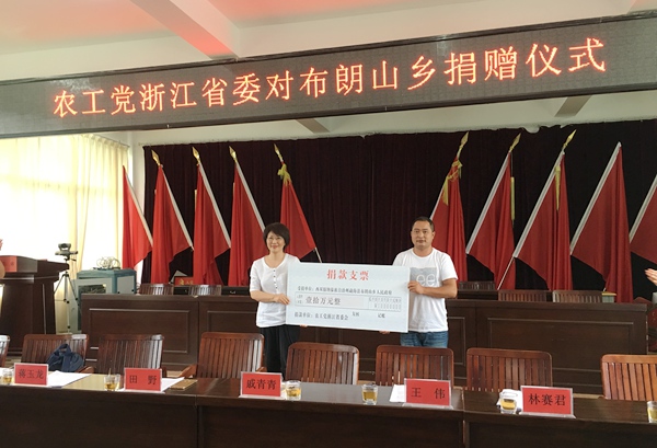 为了提振布朗乡的教育事业,提升乡村师生教与学的积极性,田野副主委代表浙江省委会为布朗山乡捐赠了10万元,作为布朗山乡的教育基金。在布朗山乡政府的会议室,举行了简单的捐赠仪式,乡党委书记朱家均代表布朗山乡接受捐赠,并表示了对浙江省委会的感激之情。晚上,在回勐海县的路上,调研组一行还专程参观了布朗山乡的九年制学校。