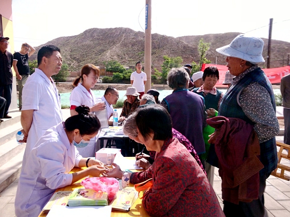 为推动精准扶贫工作深入开展,解决贫困户就医难问题,2017年6月23日上午,农工党白银区支部医生党员前往武川乡崖渠村开展以“文明白银让你心动,健康促进邀你同行”为主题的义诊扶贫活动,把送健康义诊活动搬到了群众家门口。