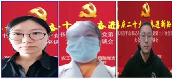 2022年11月2日下午,农工党哈医大四院支部采用线上会议形式召开“喜庆二十大 奋进新征程”学习中共二十大报告座谈会。支部主委王春英、副主委郭庆凤参加并作交流发言。郭庆凤主持会议。