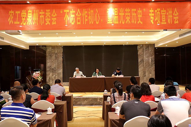 2017年7月29日下午,农工党泉州市委会举办了“不忘合作初心,重温光荣历史”专项宣讲会暨2017年新党员培训班。泉州市政协副主席、农工党泉州市委会主委陈益出席活动,市委会专职副主委谢承华主持,全市近70名新党员及市委会机关干部参加了活动。