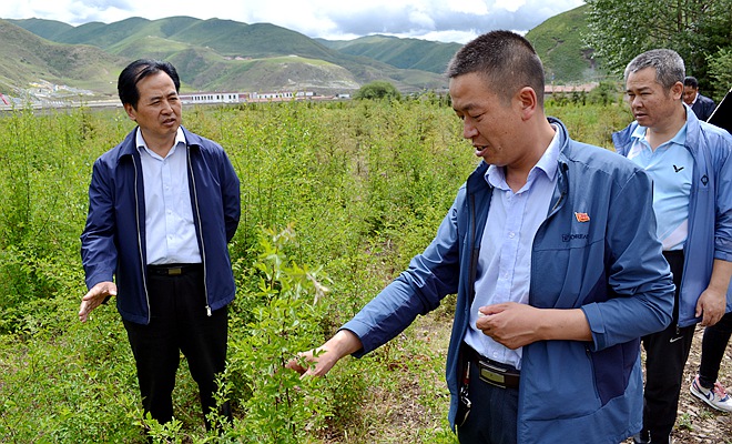 张周平充分肯定了果洛州委州政府紧紧围绕生态保护、民生改善,依托自然资源和区位优势,在发展林下经济方面所取得的突出成绩。他指出,果洛地处三江源核心区,是全省生态保护的重点地区,更是构筑国家生态安全的重要屏障。为了切实贯彻落实好习近平总书记提出的“四个扎扎实实”重大要求,果洛应认真遵循中共青海省委十三次党代会提出的“四个转变”新思路,把大力发展林下经济作为推动经济发展、增加农牧民收入、脱贫致富的有效途径来抓,坚持走生态路、吃生态饭,让林业产业成为生态产业的主力军,实现“从农牧民单一的种植、养殖、生态看护向生态生产生活良性循环转变”目标。因此,果洛要进一步细化林下经济发展规划,统筹整合资金项目,扶持相关经营体系,加大科技人才培养应用力度,同时以班玛藏雪茶开发模式为样板,精心打造果洛林下产品的中高端品牌,并通过加强电商、物流融合发展,不断加快果洛林下产品“走出去”步伐,努力实现经济发展与生态文明的双赢。