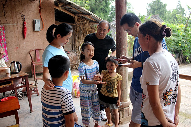 来自农工党成都市环保总支的副主委简磊带着妻儿一家,专程从成都赶来资助马濛,还带来了许多衣服、学习用品、幼儿书籍、几大袋零食和一些营养物品。看到我们一行,奶奶不时抹着眼角的泪水,动情地说:“我唯一的希望就是两小娃子了,就希望她们能快点长大。有了你们农工党爱心人士的帮助,我们就有希望了!”