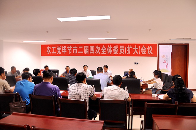 2017年8月18日,农工党毕节市委会在同心大厦四楼会议室召开二届四次全委(扩大)会议。毕节市政协副主席、农工党毕节市委会主委辜康乐,专职副主委刘发志、副主委庞小林出席会议,农工党毕节市委会委员及各支部主委、副主委20余人参加了会议。