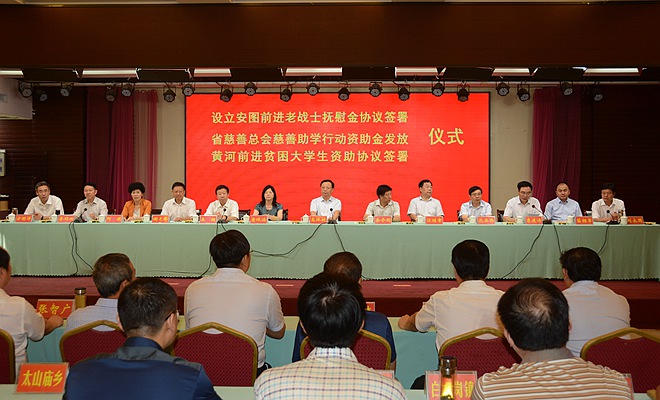 高体健在讲话中指出,举行设立安图前进老战士抚慰金、黄河前进贫困大学生资助协议签署及慈善助学行动资助金发放仪式,主要目的就是进一步营造关爱老战士、抚慰老战士的良好社会氛围,营造重视教育、关爱贫困学子的温馨社会环境。帮助为国家民族付出过青春和热血的贫困老战士改善生活、安享晚年,帮助家庭困难、渴望成才的寒门学子完成学业、学有所成,是全社会的责任。农工党河南省委会将充分发挥人才、智力和技术优势,把南召县作为健康扶贫、教育扶贫、生态扶贫的重点区域,汇集各方力量、调动各种资源,助力南召县决胜全面小康、打赢脱贫攻坚战。