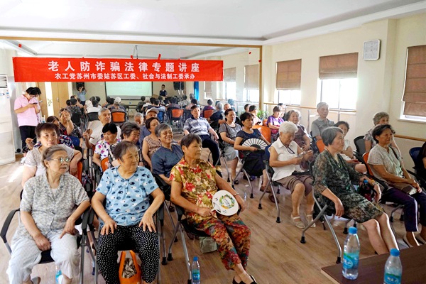 农工党苏州市委会社会与法制工委委员,法律志愿者服务队志愿者,居家乐养老服务中心爱心服务员以及社区老年人等参加活动。(吴晓庆)