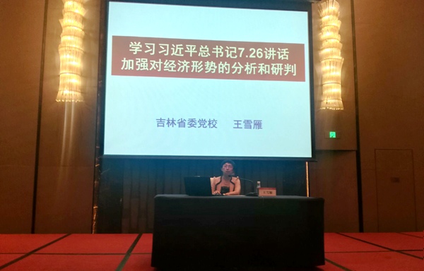 省委会邀请了中共吉林省委党校经济学教研部主任王雪雁教授作了题为“学习习近平总书记7•26讲话精神,加强对经济形势的认识和判断”的专门辅导。与会者围绕全省非公经济企业、行业发展过程中存在的困难、问题和原因进行研讨,提出具有可行性的意见和建议。